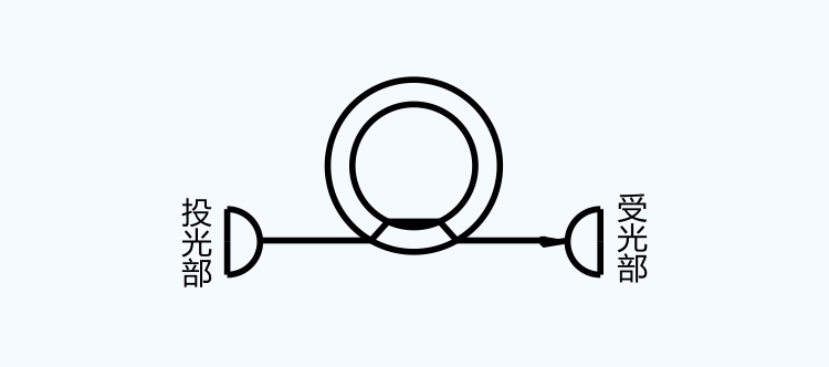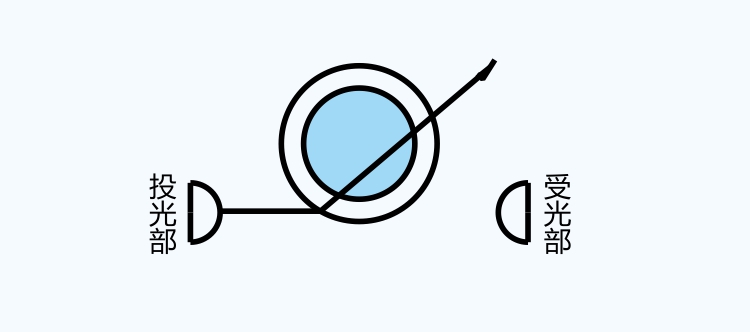 如导管内有液体,投光部发出的光将穿透液体,不进入受光元件。(遮光状态)